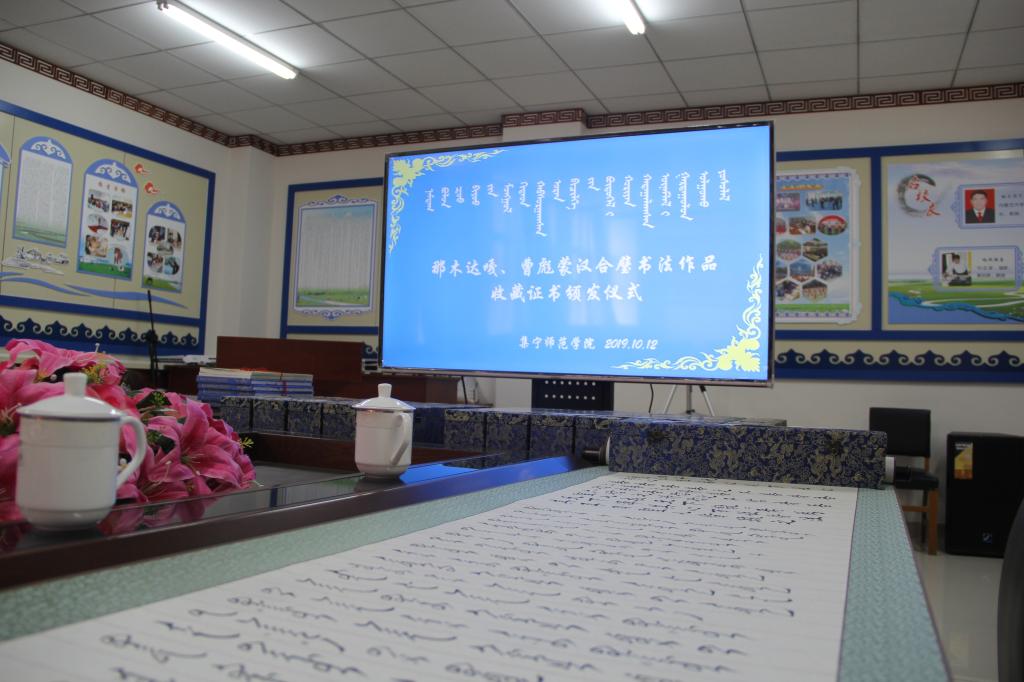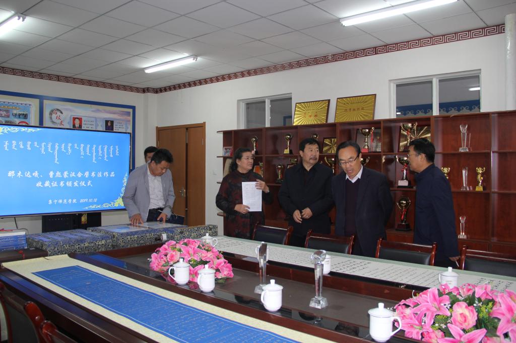 10月12日beat365正版唯一官方网站收藏书法家曹彪、那木达嘎手抄《成吉思汗箴言》蒙汉合璧长卷仪式在蒙古学学院举行。校党委委员、副校长许卫,党委委员、宣传部长张富,党委委员、科技处处长李平,机关党委书记欧军,科技处副处长杨瑞芳,蒙古学学院领导班子及部分教师参加仪式。仪式由蒙古学学院院长南斯力玛主持,许卫代表学校讲话。