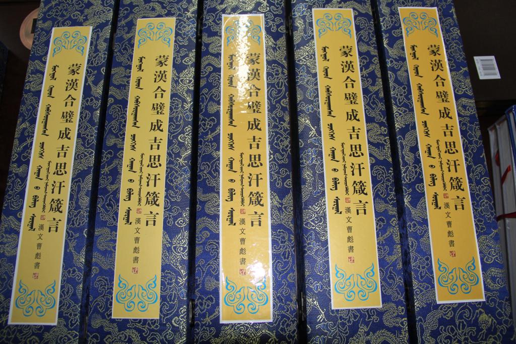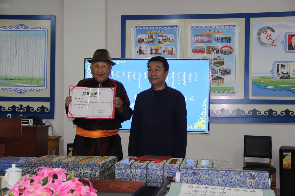 《成吉思汗箴言》蒙汉合璧书法长卷作品是内蒙古著名书法家曹彪先生和蒙古族书法家那木达嘎先生历经半年的艰辛创作之精品力作这一长卷共分14卷,每卷平均长度8米,高度0.6米。非常荣幸二老合作完成的作品能被beat365官网民族陈列室收藏。该创作的完成可以说是添补了我国书法历史的一项空白。这一前所未有的宏篇巨作,集中展现了曹彪、那木达嘎二位先生超前的思维,厚重的文化底蕴和不凡的书法艺术水平。体现了我们蒙汉团结的民族大义,全国各民族大团结的民族大义,展现了我们共同携手为创造美好的未来而努力的决心。