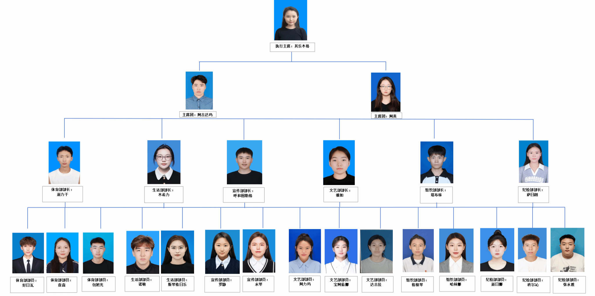 蒙古学学院16届学生会成员结构图