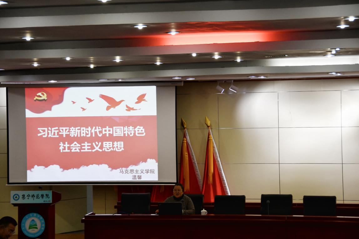 温馨在“习近平新时代中国特色社会主义思想”的专题讲座中,从创立背景、科学内涵、历史地位等方面进行了讲解。最后说明习近平新时代中国特色社会主义思想这是马克思主义中国话的最新成果,新时代的精神旗帜,也是实现中华民族伟大复兴的行动指南。