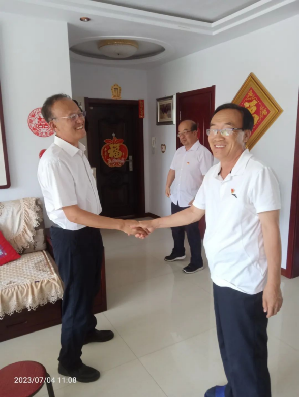 在党的102岁生日之际,按照校党委安排部署,2023年7月4日上午,马克思主义学院党总支书记胡志胜、教学院长段文智、教师党支部书记吴红杏、办公室主任李富强一行代表马克思主义学院党总支亲切看望慰问退休老党员欧军教师,并送上礼品。
