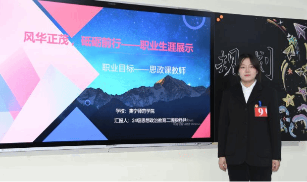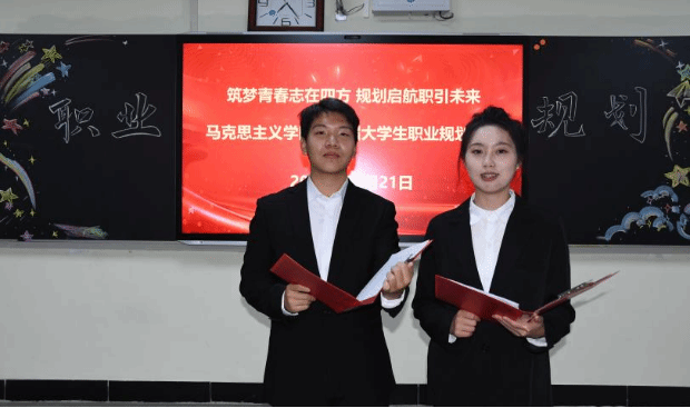 为加强高校生涯教育和就业指导,充分发挥“以赛促学、以赛促教、以赛促就业”的育人功能,增强大学生生涯规划意识和求职实践能力,11月21日晚上,马克思主义学院于主教419教室举办“筑梦青春志在四方 规划启航职引未来”大学生职业规划大赛。马克思主义学院党总支书记胡志胜、副书记段文智、韩宁老师、成格乐图老师、孙超强老师担任评委,2024级思想政治教育一班杨楠、2024级思想政治教育二班李婧主持比赛。