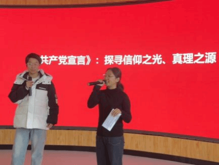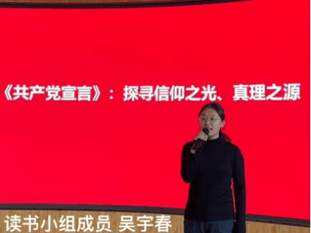 随后,学生代表依次围绕《共产党宣言》的读书心得作了分享交流。他们或深情讲述书中理论对自己思想的启迪,或生动描绘经典段落引发的思考,展现了新时代青年学生对马克思主义理论的深刻理解和独到见解。