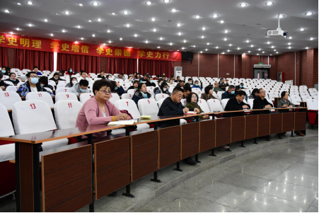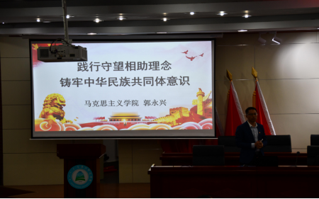 为进一步深化民族团结进步教育,铸牢中华民族共同体意识,不断推动党史学习教育走深走实,2021年11月20日上午,马克思主义学院教师郭永兴在beat365官网图书馆报告厅做了题为“践行守望相助理念,铸牢中华民族共同体意识”的党员教育培训。会议由马克思主义学院党总支副书记胡志胜主持。校党委宣传部党支部、校党委组织、统战部党支部、校工会党支部、校团委党支部、体育与运动学院党总支、文学与新闻传播学院党总支以及马克思主义学院党总支的全体师生党员参加了此次学习。校党委副书记刘春以普通党员的身份参加了此次学习。