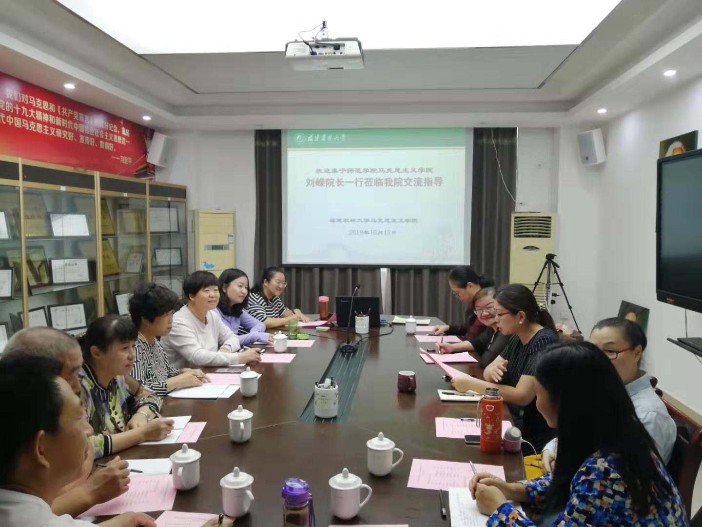 刘嵘一行先后访问了福建中医药大学、福建师范大学、福建农林大学,受到三所大学马克思主义学院领导、教研室主任以及学院相关教师的热情接待并举行了座谈会。会上,所考察学院领导介绍了自己的学校和学院的基本情况。刘嵘感谢贵方院校的热情接待,并就beat365官网和学院的基本情况进行介绍。随行的德育教研室主任孙继红、马克思主义中国化教研室主任温馨、中国近现代史纲要教研室主任哈斯布和、综合教研室主任张亮及额尔敦其其格、胡文婧、张蕾与同行开展了精准对接,就思想政治理论课教学模式、课堂教学改革、专题教学情况、实践教学安排、课程考核方式、科研工作的开展、人才队伍的引进、青年教师的培养、马院建设等方面内容展开了深入的探讨交流。