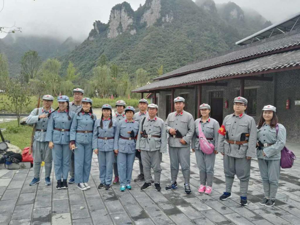 10月10日马院教师一行来到了娄山关战斗遗址,在情景教学《娄山关大捷》中几位教师亲自加入到演出的队伍中,切实感受了这场战争胜利的来之不易与红军战士英勇顽强的斗争精神。夜晚老师们身着红军服,手提马灯克服黑暗与大雨感受了毛泽东小道带来的震撼与感动。