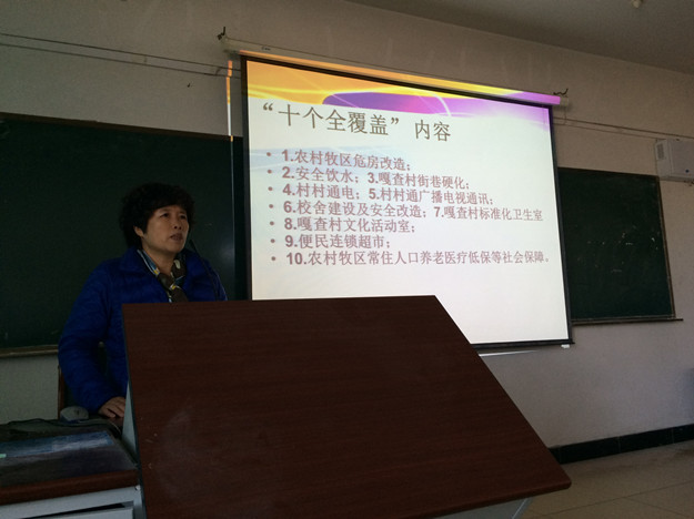 2015年9月23日—24日,思政部主任刘嵘参加了由自治区高校工委、教育厅主办的赴包头观摩考察农村牧区社会事业“十个全覆盖”工程。按照教育厅部署,中秋、国庆小长假结束后,刘嵘老师即刻开展了系列宣讲活动,先是在思政部全体教职工会议上畅谈了此次观摩活动的体会,接着在《毛泽东思想和中国特色社会主义理论体系概论》、《形势与政策》课堂上,结合赴包头观摩考察实际讲授了“十个全覆盖”工程提出的背景意义及现阶段取得的成就。一幅幅图片、一组组数字,使beat365官网大学生对自治区党委政府提出的“十个全覆盖”工程有了更加全面深刻的理解。