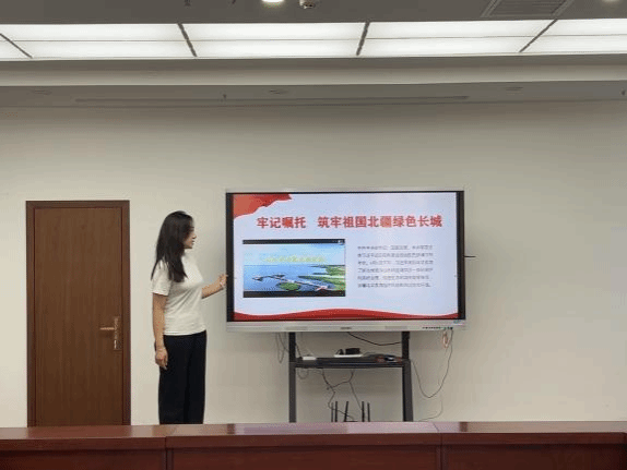 7月23日,在内蒙古巴彦淖尔市五原县金桥华府西环社区,宣讲团成员2023级思想政治教育二班郭韦廷同学,结合家乡特色以“牢记嘱托 筑牢祖国北疆绿色长城”为主题,面向社区2位党员,5名共青团员及10名青年代表宣讲习近平新时代中国特色社会主义思想和中国式现代化的相关理念。活动中,大家围绕习近平生态文明思想、弘扬“三北”精神等内容展开热烈讨论,纷纷表示作为北疆儿女定会牢记习近平总书记的嘱托,在筑牢祖国北疆生态安全屏障上展现新作为,书写新篇章。