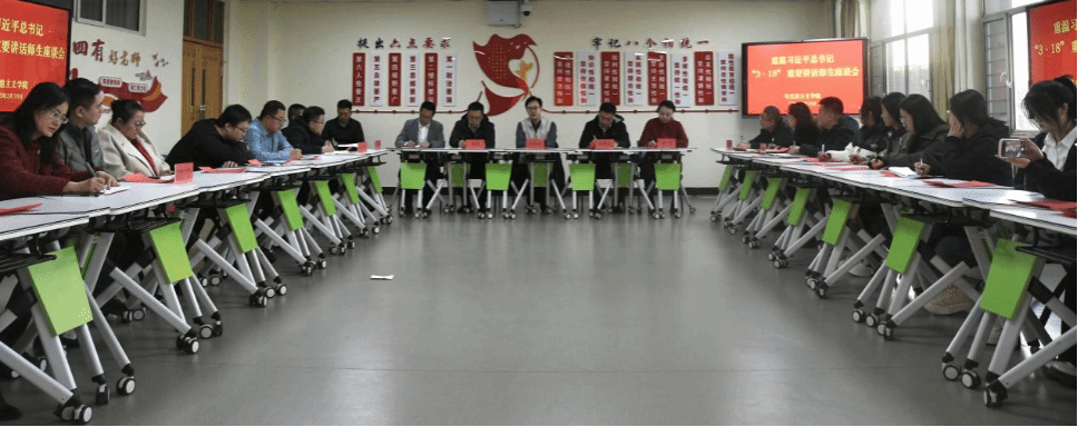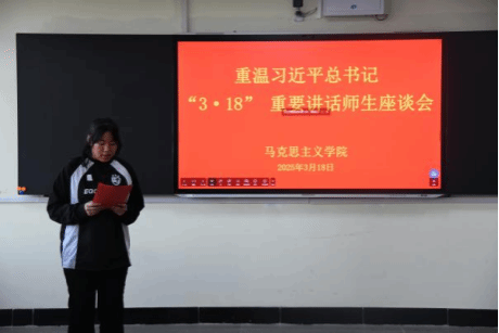 3月18日下午,学校举行重温习近平总书记“3·18”重要讲话师生座谈会。校党委书记张宝成,校党委委员、副校长拓俊杰,校党委委员、宣传部部长郭英出席会议,学校相关职能部门负责人和思政课教师代表及学生代表共聚一堂,深入交流学习体会,共谋学校思政课建设新篇章。马克思主义学院副院长郭永兴主持座谈会。