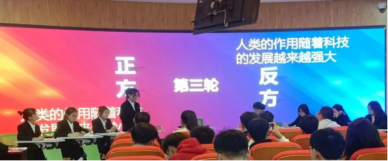 这是一次逻辑思维的切磋,也是一个语言表达的战场。比赛中,正反双方围绕辩题展开激烈对抗,辩手们认真专注、思路清晰,针锋相对、金句频出。经过紧张刺激的争辩,辩论赛在同学们热烈的掌声中落下帷幕。
