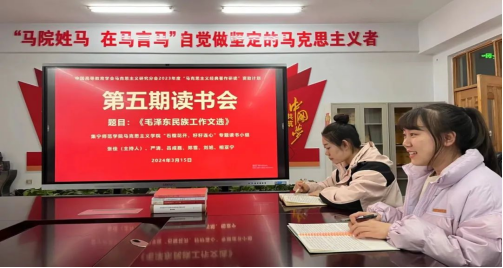 会上,同学们依次就自己所研读内容进行了分享。以毛泽东同志的相关文章为切入点,向大家阐述了毛泽东民族工作思想的形成背景、基本内容及当代意义。通过热烈的讨论和交流,成员们深刻领悟了毛泽东民族工作思想的丰富内涵和时代价值。