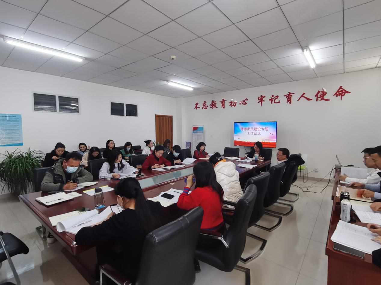 2021年12月2日下午,现代服务学院组织召开师德师风专题工作会议,开展师德师风专题学习教育。会议由党总支书记李荣利主持,学院全体教职工参会。