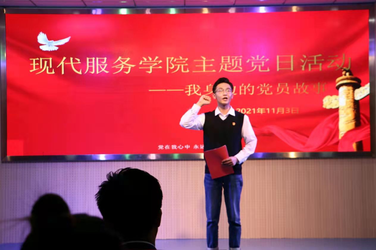 11月3日下午,现代服务学院开展“我身边的党员故事”主题党日活动,活动由现代服务学院学工支部书记赵思捷主持,朱玉东书记以普通党员身份参加了此次主题党日活动。