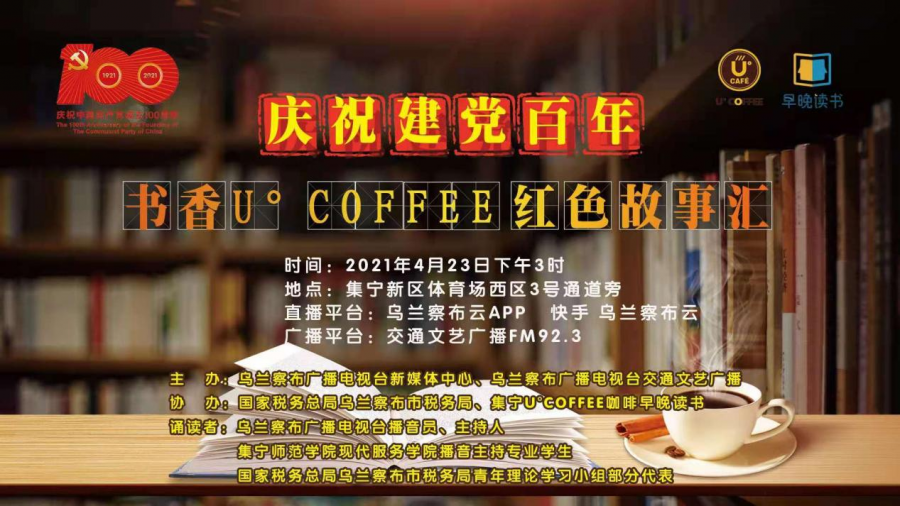 为给学生提供更多实践和学习平台,在党的100岁生日之际,4月23日现代服务学院19级播音与主持艺术一班部分学生和20级播音与主持艺术一班部分学生应邀来到U℃咖啡厅参加由乌兰察布广播电视台新媒体中心和乌兰察布广播电视台交通文艺广播主办的“庆祝建党100周年”暨“第26个世界读书日”红色故事汇诵读活动。