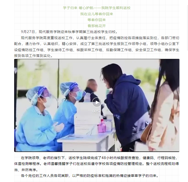 现代服务学院精心组织2022年秋季学期第三批返校学生报到工作