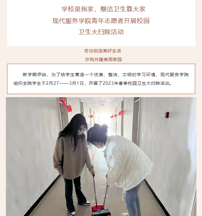 学校是我家,整洁卫生靠大家丨现代服务学院青年志愿者开展校园卫生大扫除活动