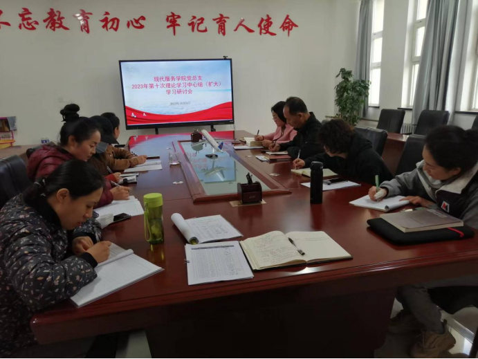 10月8日现代服务学院党总支组织召开2023年第十次理论学习中心组(扩大)学习研讨会。学习研讨会由学院党总支书记李荣利主持,学院理论学习中心组成员及全体环节干部参加了学习研讨会。