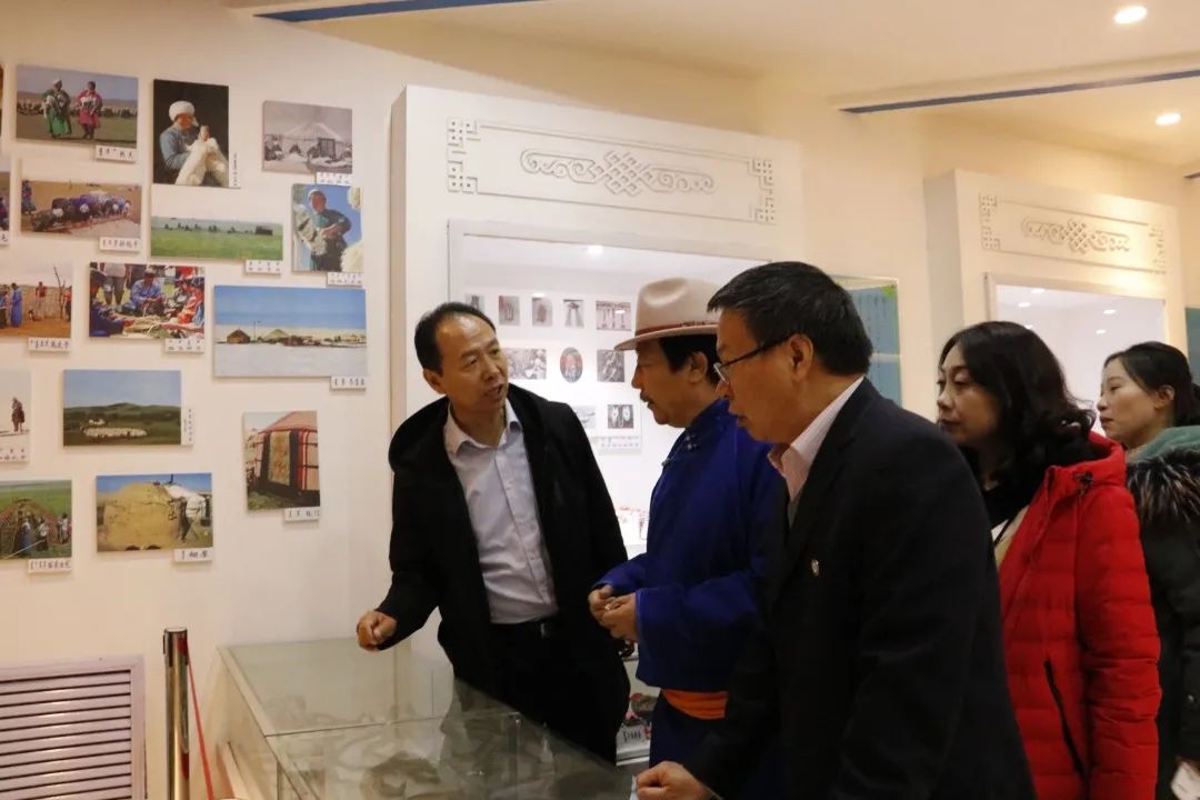 座谈会后,蒙古学院党总支书记李青龙带领现代服务学院的全体老师参观了蒙古学学院的特色实训室和博物馆。