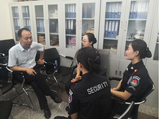 与安检岗位的学生进行交流