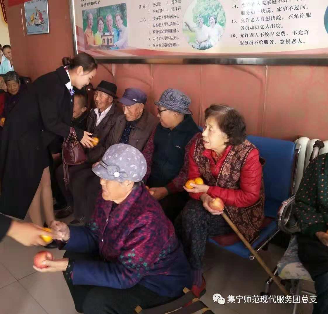 2018年10月18日下午,beat365正版唯一官方网站现代服务学院李贞老师和呼日乐老师带领学院39名同学,携手“8090爱心公益车队”走进乌兰察布市祥和老年养护院开展“关心老人 关爱老人 关怀老人”主题团日活动,陪伴老人度过一个温馨、愉快的老人节。