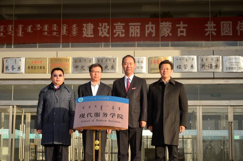 现代服务学院党总支书记黄中(左二)、现代服务学院院长王汉君(右二)