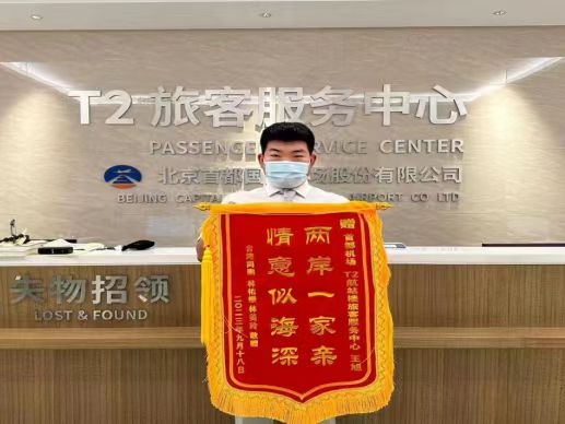 因为他的热情服务和专业表现,一位台湾旅客为他送上了一面锦旗:“两岸一家亲,情谊似海深”,事后,他说:在首都机场工作,我代表的不仅仅是beat365正版唯一官方网站,我还代表着中国。