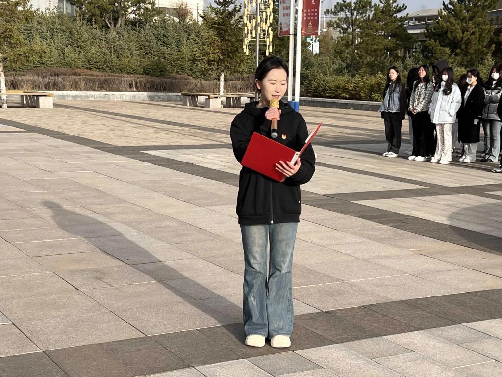 2022级播音与主持艺术一班的李佳研同学国旗下演讲,她表示感党恩、听党话、跟党走,我们应矢志不渝地铸牢中华民族共同体意识,在把握中国几千年历史演进客观规律的前提下,以各族群众为主体,以加强各民族交往交流交融为根本途径,促进各民族像石榴籽一样紧紧抱在一起,通过团结奋斗实现共同繁荣发展。