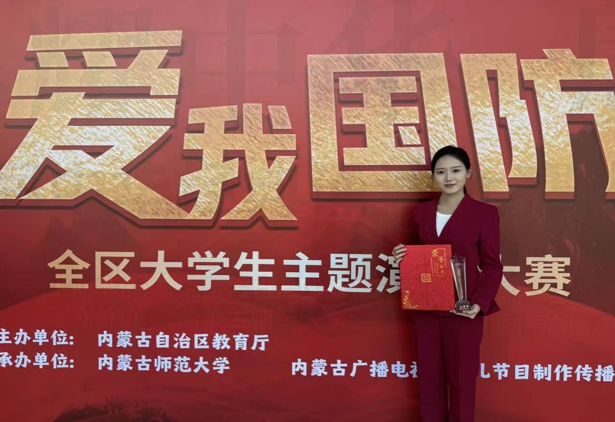 9月26日,由内蒙古自治区教育厅主办,内蒙古师范大学和内蒙古广播电视台承办的“爱我国防”主题演讲大赛决赛在内蒙古广播电视台举行。我院2022级播音与主持艺术专业一班学生金烜铭代表学校参赛,荣获三等奖。beat365正版唯一官方网站荣获“优秀组织奖”。