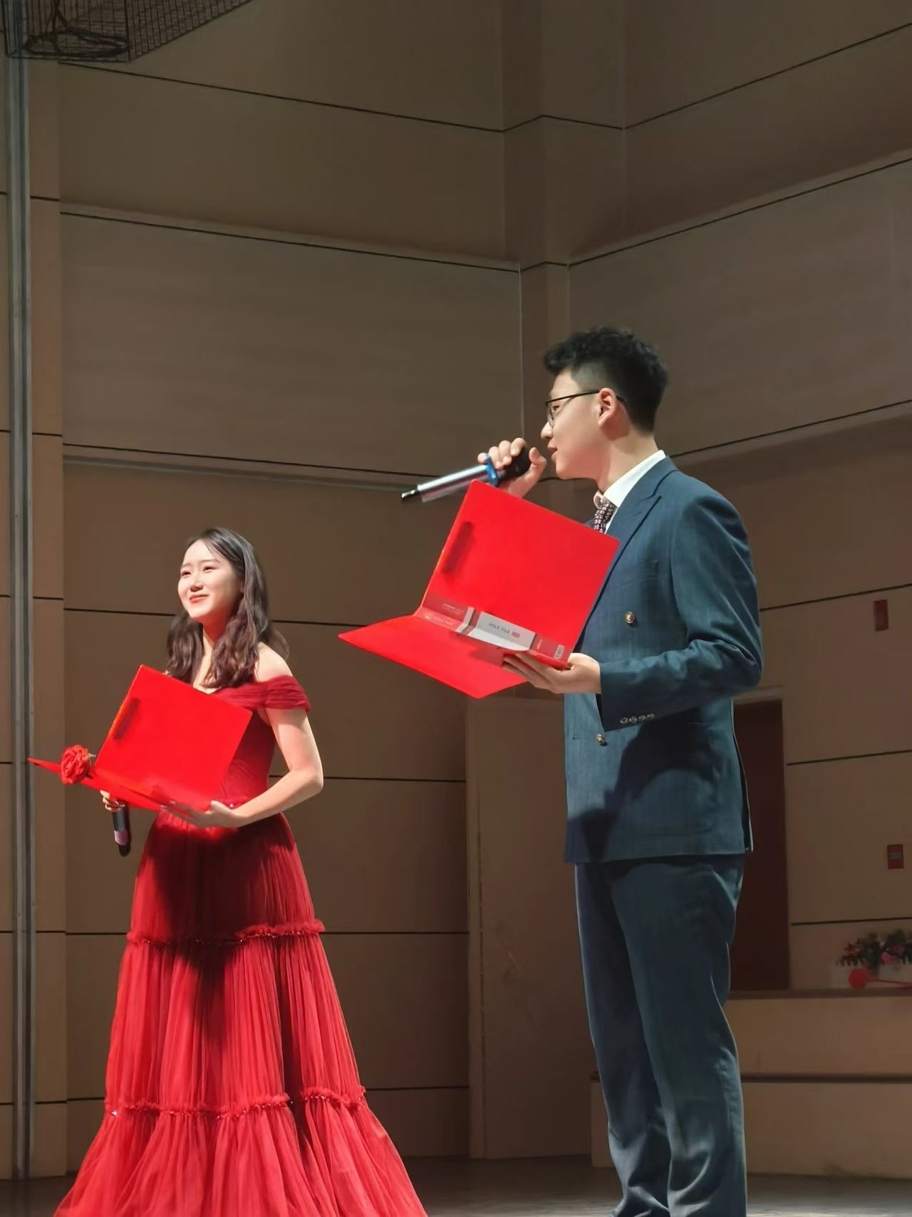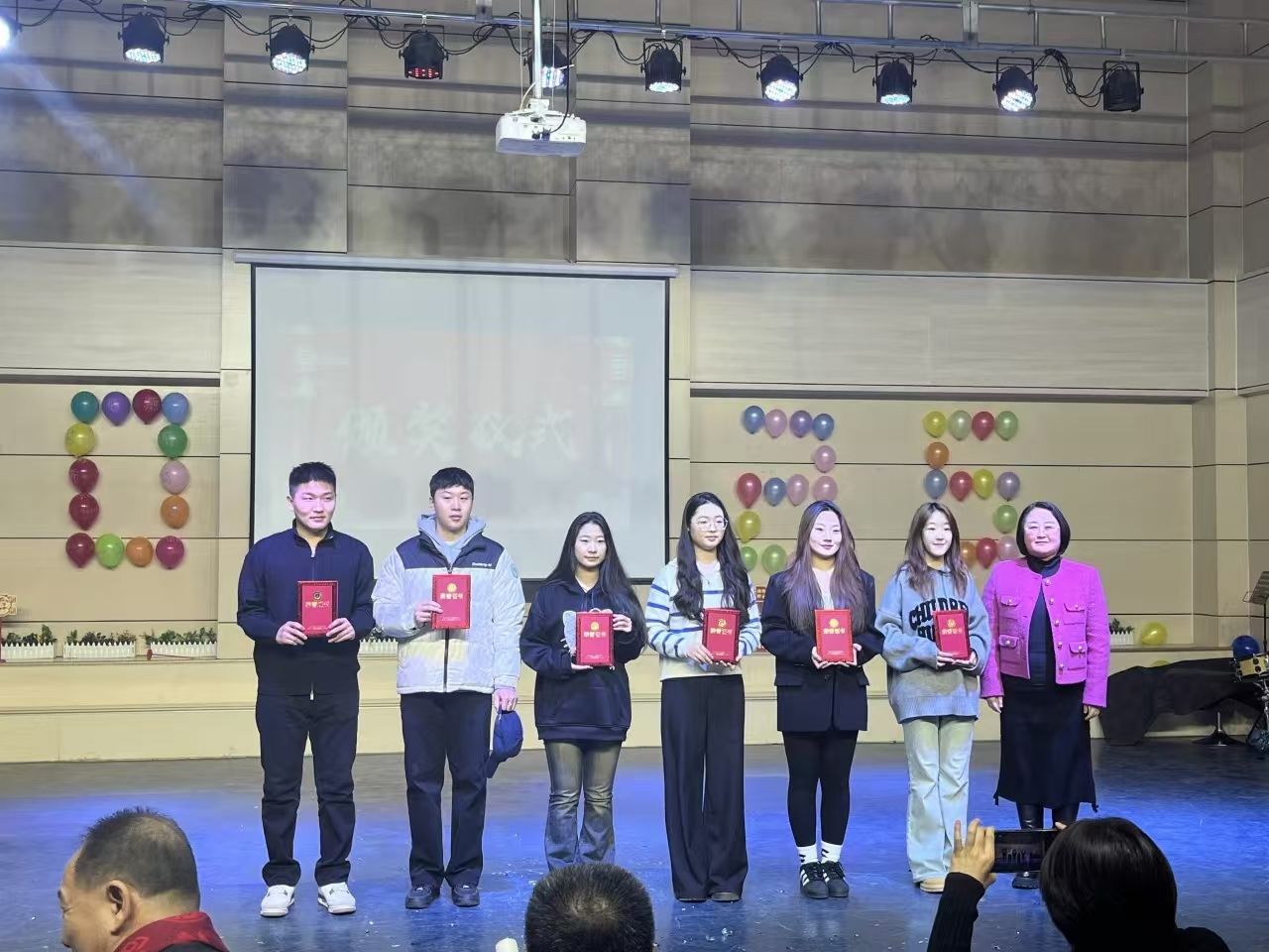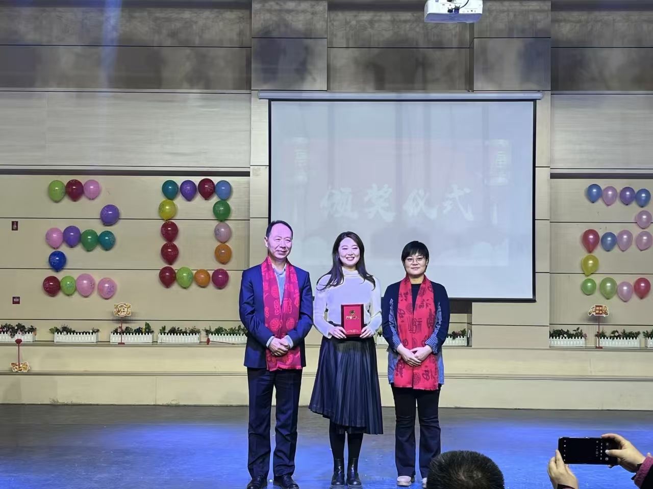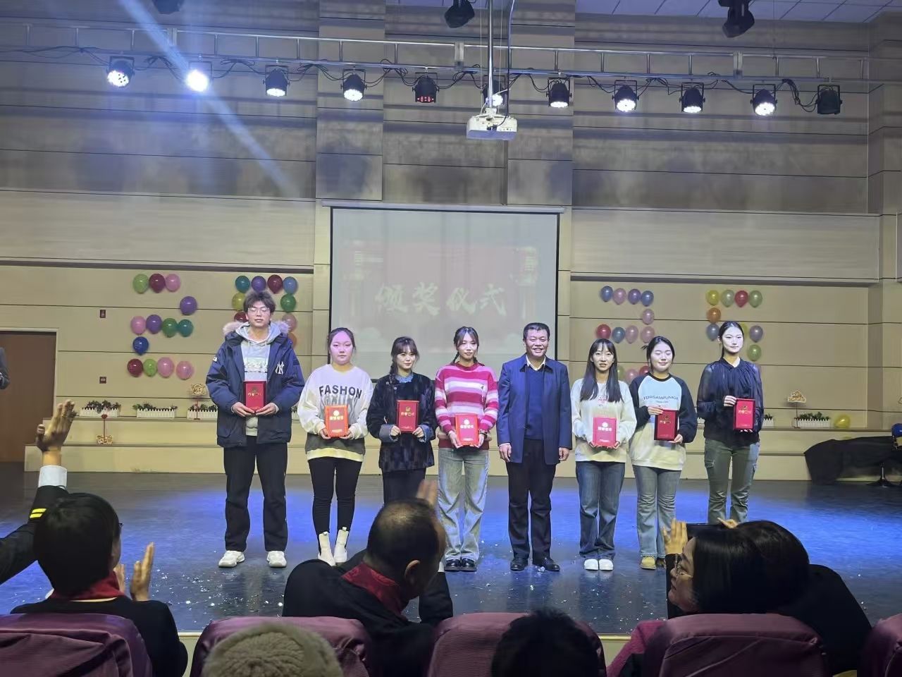 晚会中穿插的表彰仪式,气氛热烈荣耀与感恩交织。学院对一众表现卓越的师生给予了高度肯定:教学优秀教师宛如灯塔,以渊博学识和精湛教法点亮学生求知路;学生社会实践的积极参与者,深入社会、磨砺自我,展现青春担当;就业先进教师精准导航,助力学生逐梦职场;荣获国家奖学金的学生更是凭借不懈努力与卓越才华脱颖而出。学院借表彰之举,树榜样力量,激励全体师生在新一年以先进为楷模,拼搏奋进、勇攀高峰