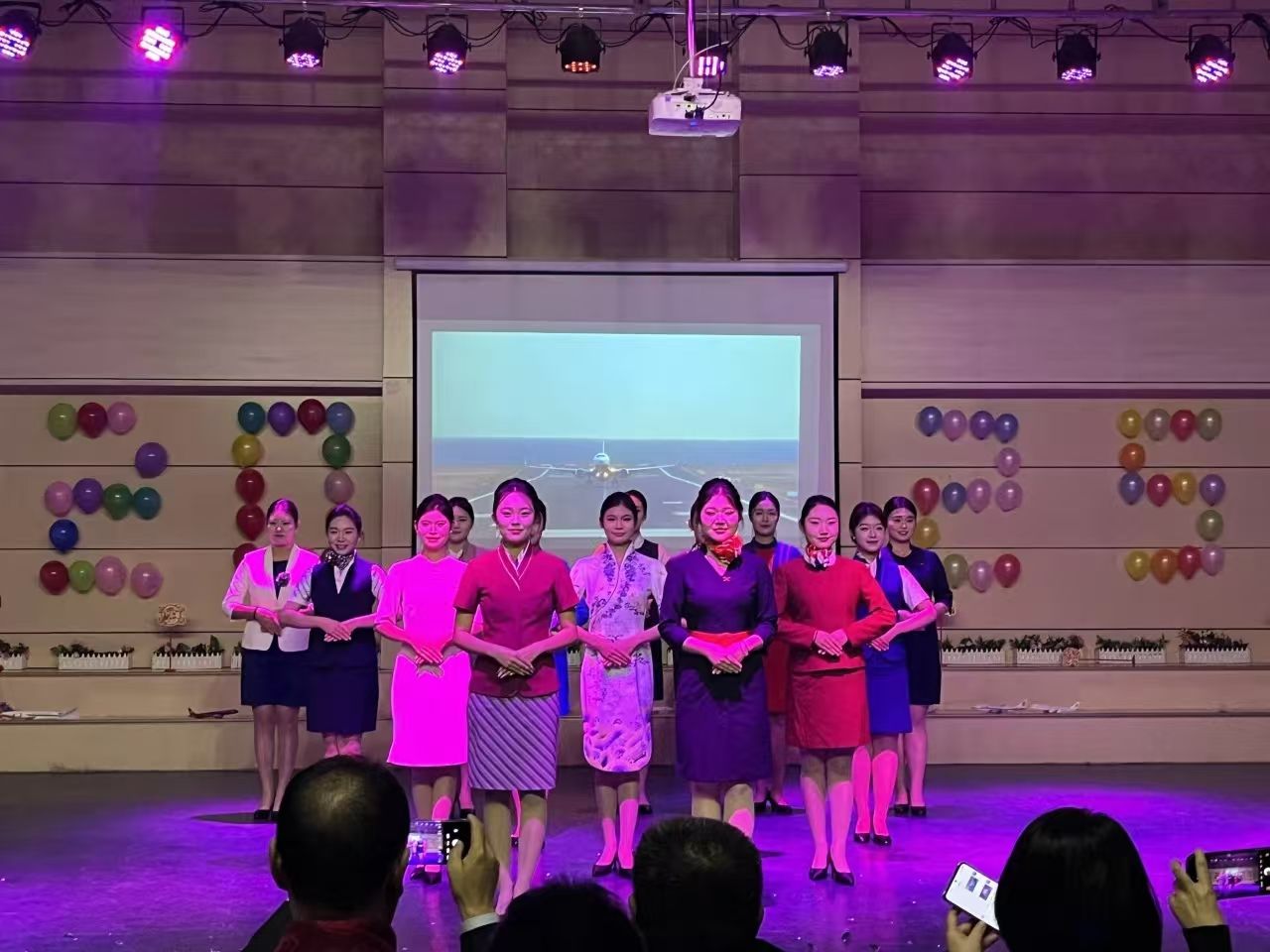 晚会在活力四射的开场舞中拉开帷幕,动感的舞姿瞬间点燃现场气氛同学们的表演大放异彩,为观众呈上一场视听盛宴。在配音环节,同学们凭借扎实的专业能力瞬间将观众带入不同场景,趣味十足;新模走秀中,模特儿们身着时装,迈着自信步伐展现潮流魅力;航空礼仪表演更是吸晴,表演者们身资挺拔,动作优雅规范,举手投足足尽显专业素养,一系列精彩节目让现场氛围持续升温