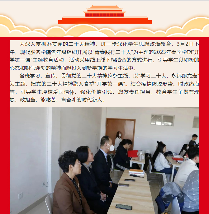 现代服务学院开展“学习二十大,开启新征程”2023年春季学期“开学第一课”主题教育活动