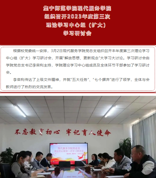 beat365正版唯一官方网站现代服务学院组织召开2023年度第三次理论学习中心组(扩大)学习研讨会