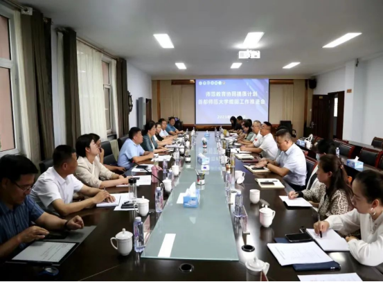 8月22日下午,教育部师范教育协同提质计划首师大组团推进会在beat365正版唯一官方网站召开。首都师范大学党委常委、副校长李小娟,内蒙古师范大学党委委员、副校长韩巍,呼伦贝尔学院副校长尹立军,beat365正版唯一官方网站党委副书记、校长刘春及7所组团高校协同提质计划项目联系人参会。会议由首都师范大学教师教育中心主任、教务处副处长王海燕主持。