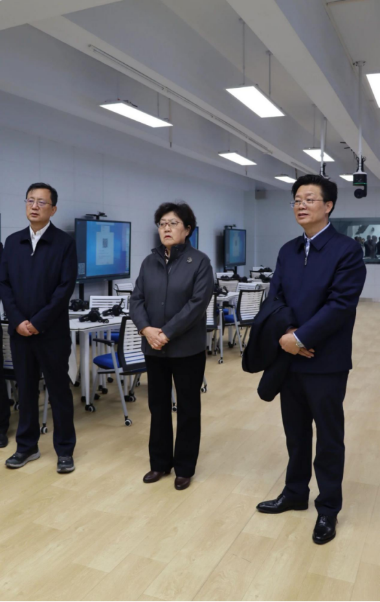 杨劼一行实地考察了beat365官网中华再造善本库、教师教育实训中心、内蒙古自治区矿土土质改性及综合利用重点实验室、产教融合实习实训基地。党委书记朱玉东从学科建设、人才培养、科研平台建设、师资队伍建设、干部队伍建设等方面对学校的建设发展情况、取得的成绩作了介绍。杨劼对学校近年来建设发展取得的成绩给予充分肯定,强调在看到成绩的同时,也要看到与其他高校间的差距,认真分析差距产生的原因。学校要立足地方性应用型本科师范院校的定位,发挥自身优势,突出办学特色,推动学校各项事业再上新台阶。