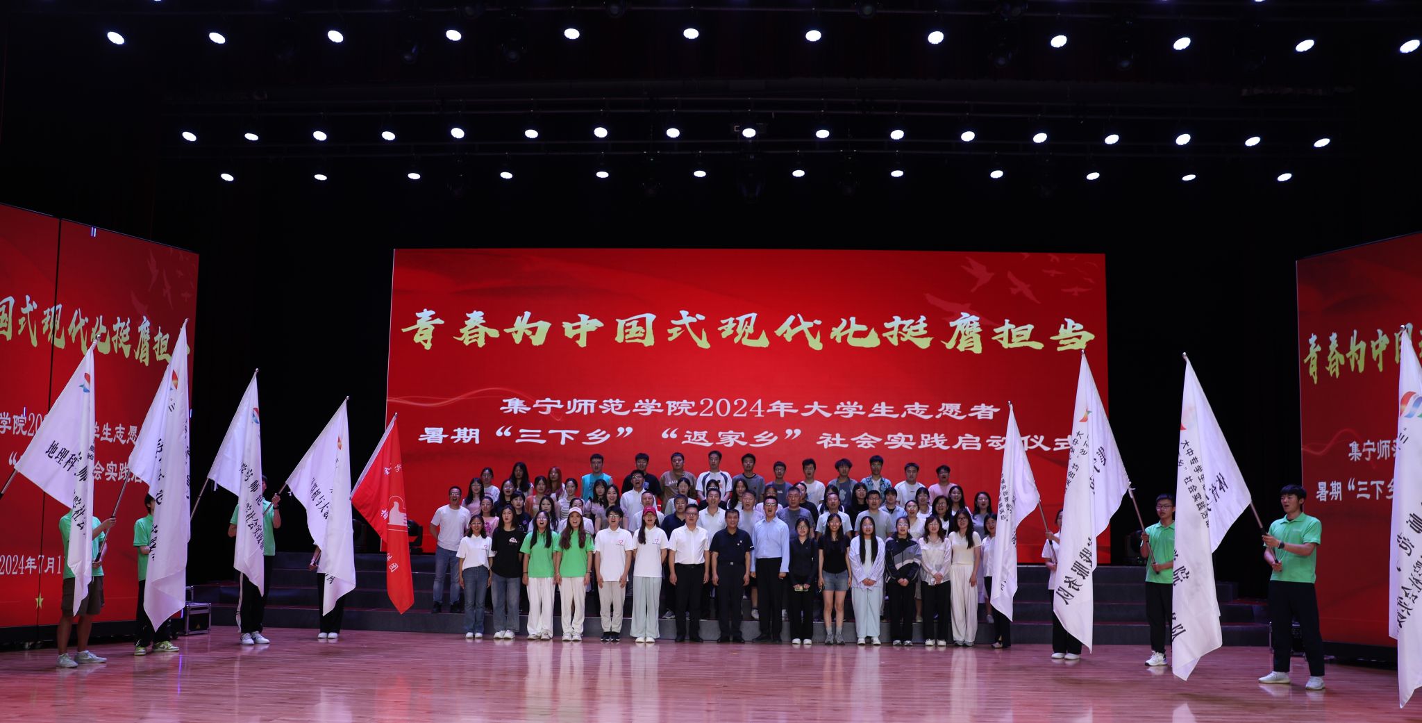 7月11日,beat365正版唯一官方网站2024年暑期“三下乡”社会实践活动启动仪式成功举办。校党委副书记李景杰出席并讲话,党委委员、宣传部部长郭英,各二级学院分管共青团工作领导、团总支书记、泉山校区二级学院学生代表共500余人参加启动仪式。