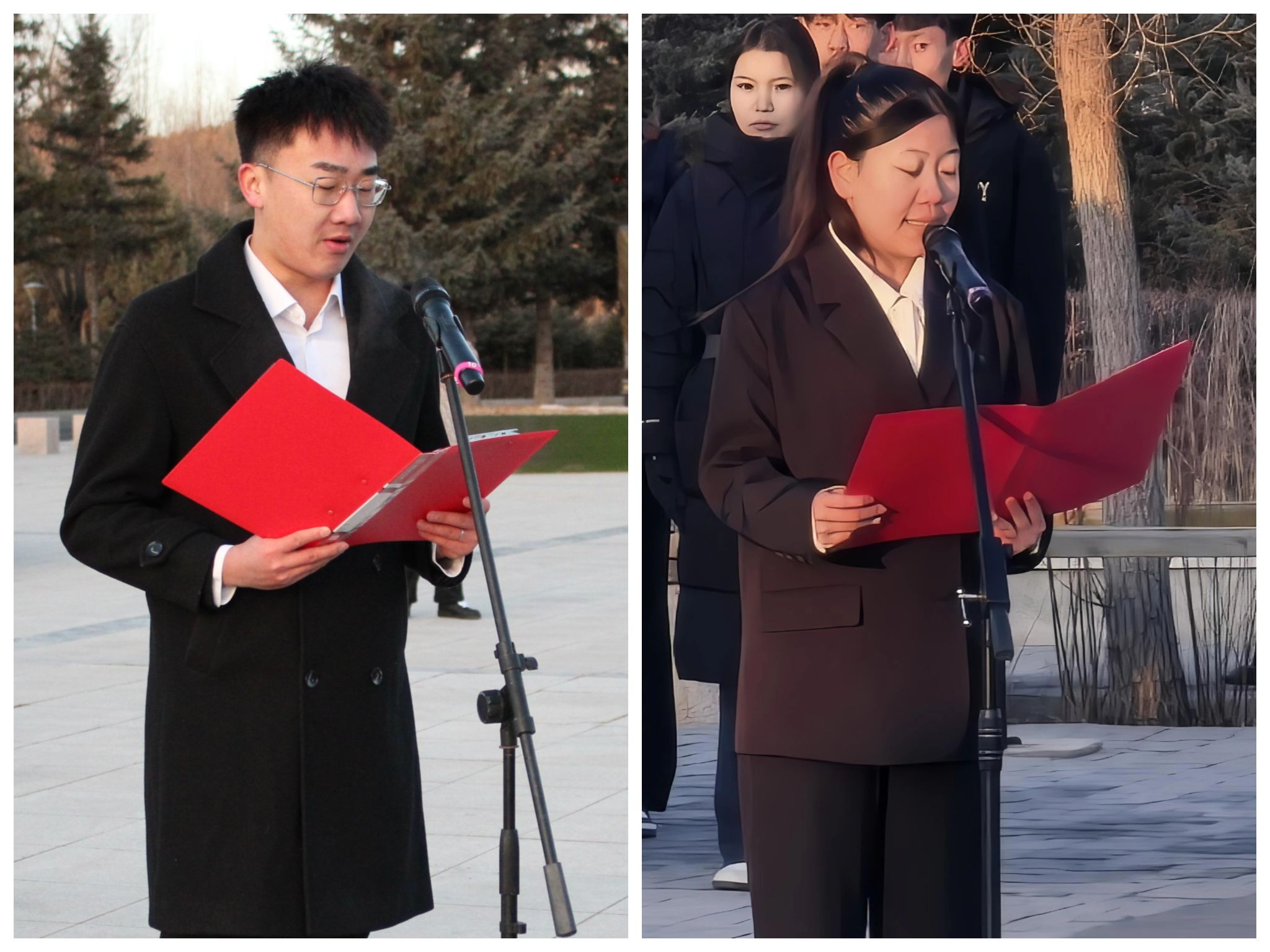马克思主义学院张程越、教育科学学院陈金蕊两位同学在两校区分别演讲。他们表示,新学期是锚定目标、厚积薄发的全新契机,全体同学要从先辈楷模与时代榜样中汲取奉献与担当的精神力量,在大学时光中潜心钻研知识、自觉涵养品格、坚定理想信念。同时向全体同学发出倡议:笃学不倦,以勤勉夯实成长根基;明辨笃行,以自律涵养高尚品格;胸怀家国,以行动勇担时代使命,将个人理想追求融入国家发展大局和民族复兴伟业。