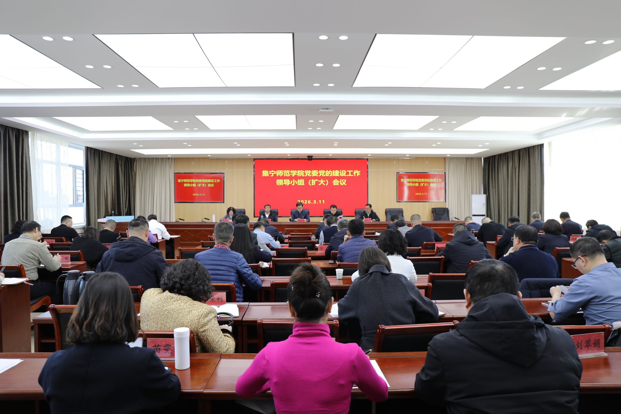 3月11日,学校召开党的建设工作领导小组(扩大)会议,深入学习贯彻习近平总书记关于树立和践行正确政绩观的重要论述,全面落实中央及自治区党委、乌兰察布市委相关文件会议精神,研究部署学校树立和践行正确政绩观学习教育工作。校党委书记、党的建设工作领导小组组长张宝成主持会议并讲话。