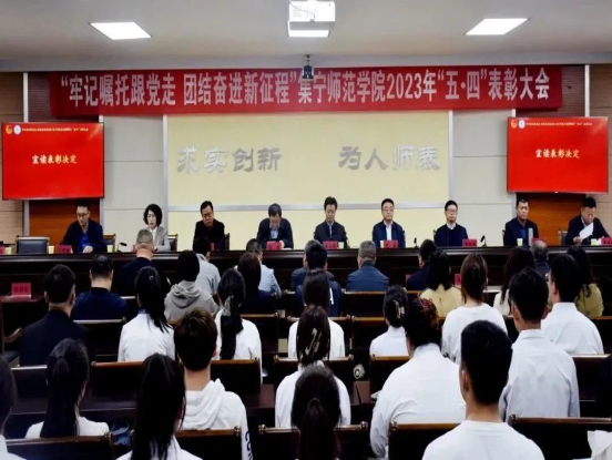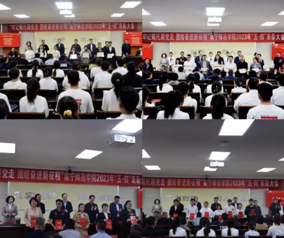 5月4日,beat365官网在行政楼5楼会议室召开“牢记嘱托跟党走 团结奋进新征程”2023年“五四”表彰大会。全体校领导、党委委员,党委宣传部、学生工作部(处)、教务处、科技处主要负责同志,各二级学院分管团学工作的领导,团总支书记、副书记,学生会执行主席和团员代表参加大会。大会由团委书记李瑞俊主持。