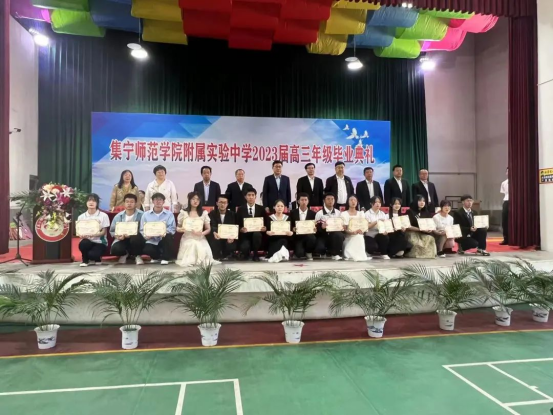 集宁师院附中党总支委员、副校长常慧芳宣读了高三年级毕业生名单和优秀毕业生名单,并颁发了毕业证书和优秀毕业生荣誉证书。两校区的高三毕业生代表发言。在校的高一高二学生精心编排了合唱、诗朗诵等节目,表达了对学长们的殷殷祝福。家长代表和高三教师代表李玲慧、张敏发言,为学生送出祝福。高三学生代表向老师献花,感谢恩师三年的陪伴和培养。全体高三师生在毕业典礼签名墙上留下自己的名字。