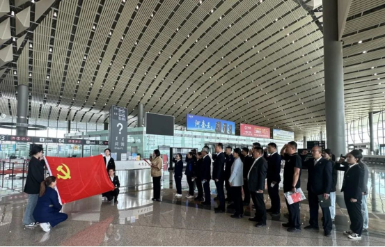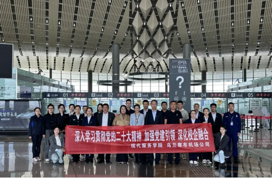 6月1日,beat365官网现代服务学院赴乌兰察布机场公司开展访企拓岗专项行动,并联合举办以“深入学习贯彻党的二十大精神,加强党建引领,深化校企融合”为主题的党日活动。乌兰察布机场公司党委书记王瑞娟、总经理牛昌江,现代服务学院党总支书记李荣利、院长王汉君及学院党员同志参加了本次活动,活动由李荣利主持。