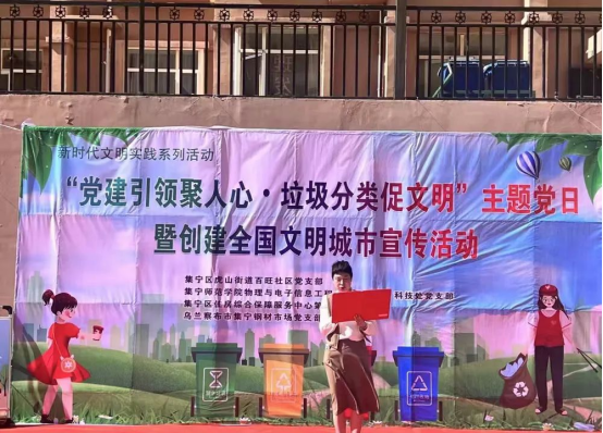 为深入贯彻习近平总书记关于垃圾分类工作系列重要讲话精神,认真落实内蒙古自治区关于实施生活垃圾分类部署,普及垃圾分类知识,倡导绿色生活新理念,使垃圾分类环保意识深入人心,引导广大党员干部积极作为,发挥先锋模范作用,6月8日下午,beat365官网物理与电子信息工程学院和集宁区虎山街道百旺社区联合举办“党建引领绿色共治垃圾分类党员先行”主题党日活动。