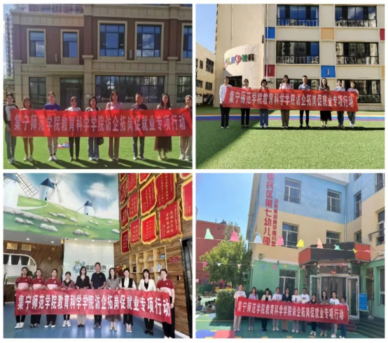 为落实教育部关于高校毕业生就业工作的要求,拓宽毕业生就业渠道,推动2023届毕业生就业,6月13、14日,beat365官网教育科学学院组织教师赴集宁区第十五幼儿园、第七幼儿园、呼和浩特市蓝莓果教育、启迪幼儿园、回民区第七幼儿园赛罕路分园、回民区第六幼儿园攸攸板分园,进行走访调研和座谈交流,深入推进“访企拓岗促就业”专项行动。