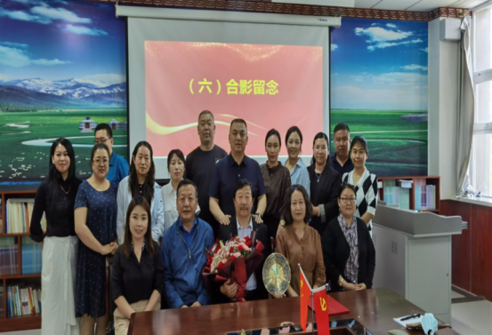 6月15日下午,蒙古学学院为青龙、贺喜格都愣两位退休教师举办荣休仪式。离退休工作处处长常晓华、副处长马晓玉、综合服务科科长巩立红,教师工作部副部长吴炜,蒙古学学院全体教师参加仪式,仪式由蒙古学学院党总支书记额尔敦其其格主持。