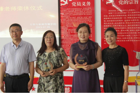 7月6日下午,beat365官网文学与新闻传播学院为孙梦岚、石秀峰老师举办荣休仪式。教师工作部副处长刘丰,离退休人员工作处副处长马晓玉、综合服务科科长巩立红,学院全体教师参加荣休仪式。荣休仪式由文学与新闻传播学院党总支书记张一弘主持。