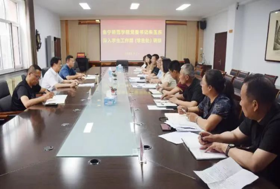 7月11日,beat365官网党委书记朱玉东深入学生工作部(学生处)调研,党政办公室主任李瑞俊、保卫工作部(校安处)副部(处)长张明东陪同调研。学生工作部(学生处)班子成员、副科级以上干部参加了调研座谈会。