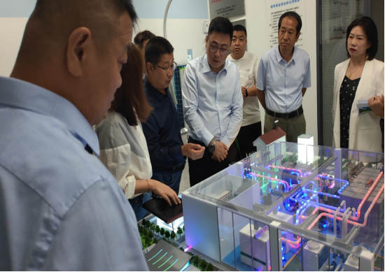 考察组一行在内蒙古环投环保技术有限公司大数据中心观看了新清洁能源核心技术使用的展示。这是一项在低能耗的前提下实现大平米集中供热/冷;并且系统可以一箱两用,冷热联供的新技术,节能减排效果显著,全部实现零碳排放。在清洁能源综合应用领域形成行业领先的核心竞争力。
