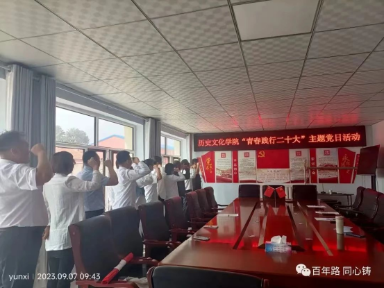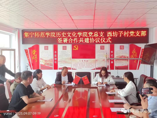 在交流会上,西坊子村党支部书记许占龙、历史文化学院党总支书记赛汉其其格介绍了校地双方党员同志。双方签订了基层党组织结对共建协议,并重温入党誓词。双方本着以共建促党建,以共建促了解,以共建促合作,以共建促发展的目标,主动服务基层群众,助力乡村振兴事业。