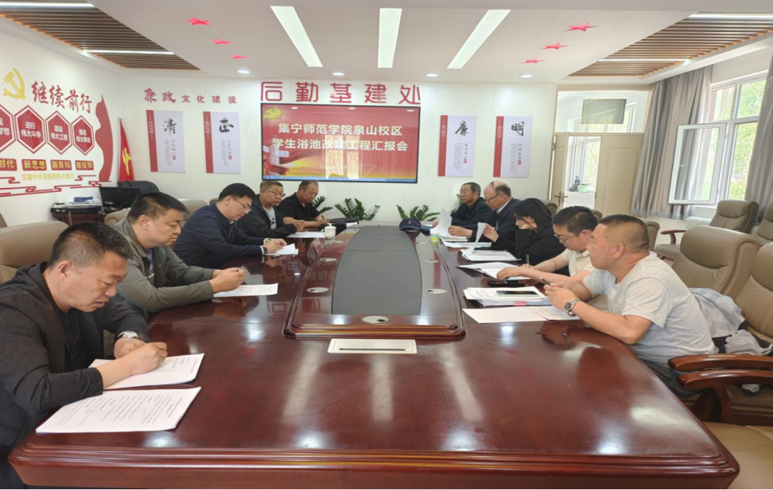 5月9日上午,校党委委员、副校长拓俊杰听取了后勤基建处关于泉山校区学生浴池改建工程项目建设进展情况汇报。后勤基建处和施工方相关人员参会。