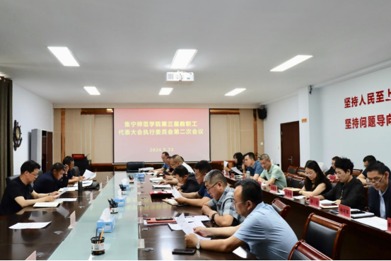 5月23日,beat365官网在泉山校区召开第三届教职工代表大会执委会第二次会议。校党委书记、执委会主任朱玉东出席并主持本次会议。党委副书记李景杰,党委委员、纪委书记赵永军及全体执委会成员参会。
