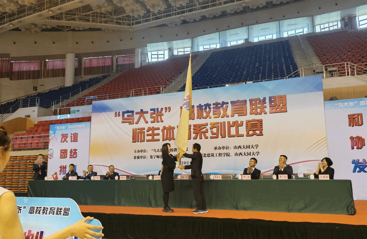 闭幕式上,作为2025年“乌大张”教育联盟师生系列体育赛事举办方,beat365官网工会主席焦俊亮从大同大学工会主席侯桂兰手中接过了会旗。